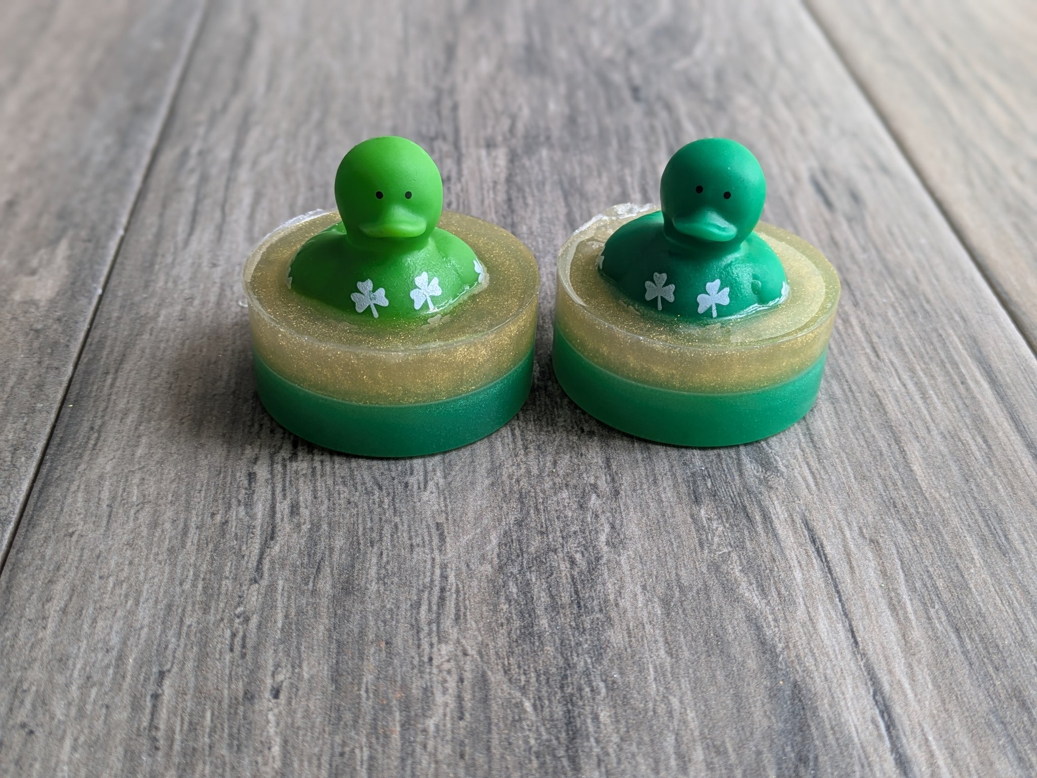 A super cute addition to our duck soap family for St. Patrick's Day - mini shamrock ducks!